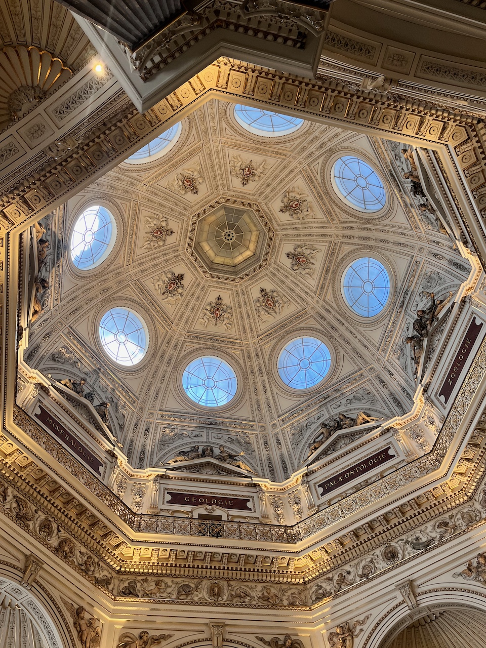 美術史美術館と同じ構造だけれども、 mineralogie, geologie, zoologie, palaeontologie … などの文字が刻まれています。