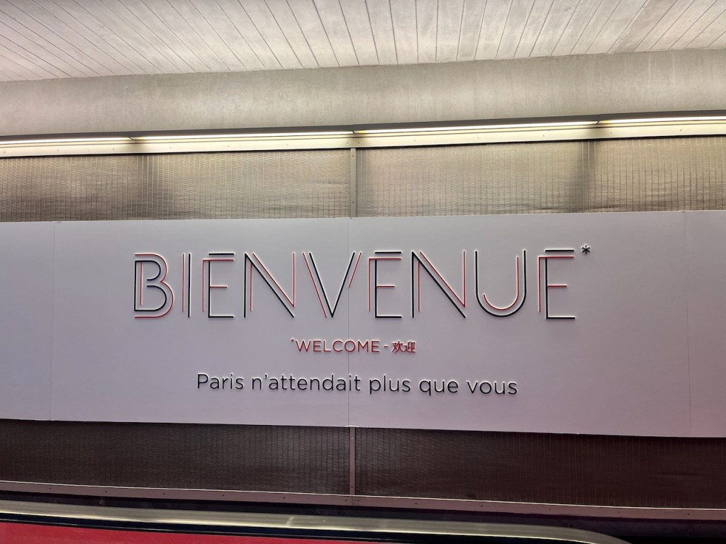 夕方から移動してパリCDG空港に到着。ちょっと白々しさを感じてしまいそうな表示Paris n’attedait plus que vous (パリが待っていたのはアナタなんですよ、ついに逢えましたね的なやつ)を横目で見ながら荷物を受け取って外へ出ると、もう午後9時を過ぎて薄暗い。
