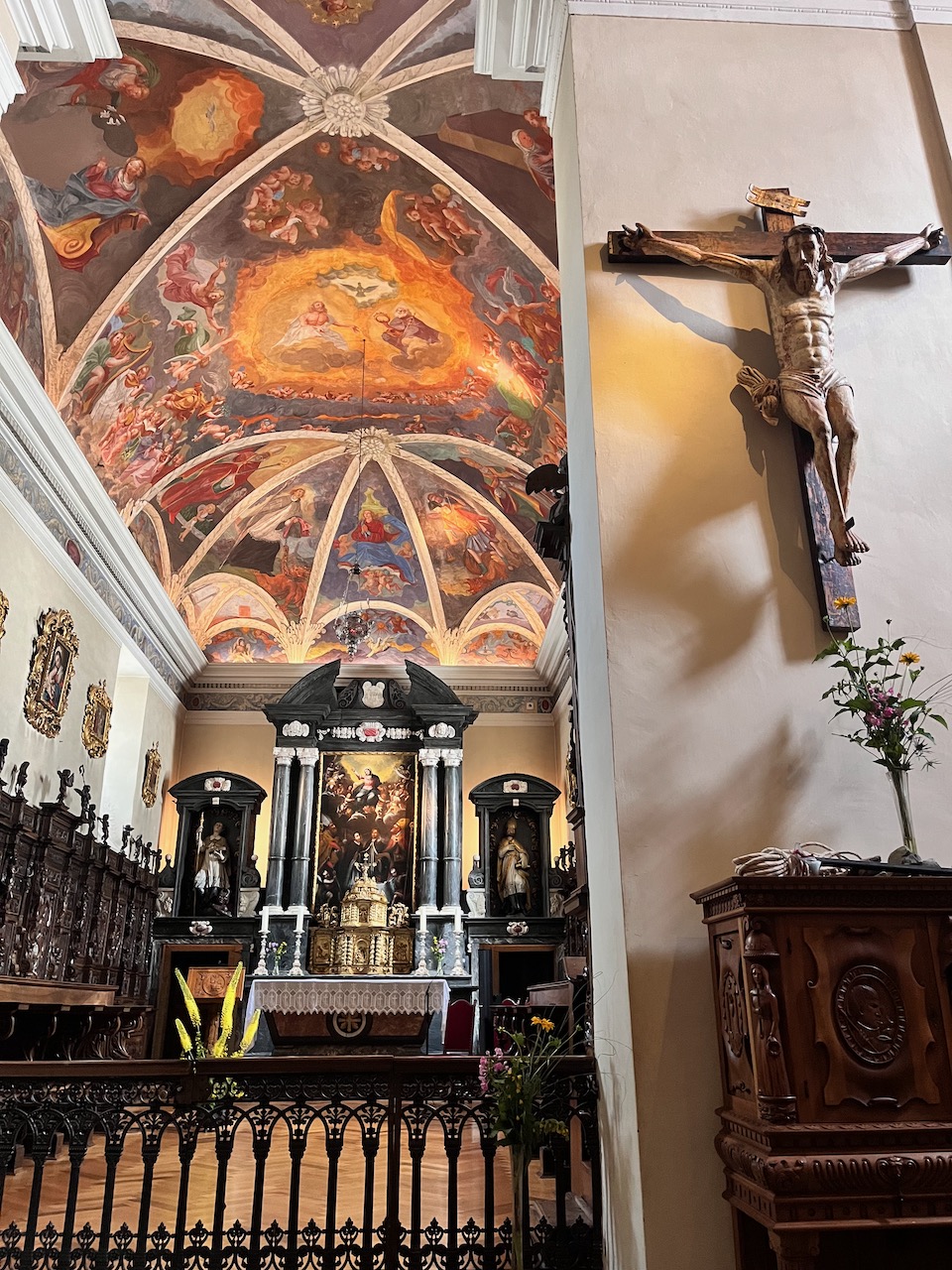 片方は巡礼宿で、中に入ると静かな雰囲気、奥へ進むと立派な聖堂がありました。