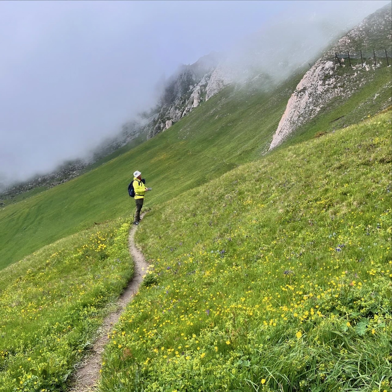 11:07 Savoleyres着。ケーブルの駅を出たところで元気よく記念撮影。歩き始めました。