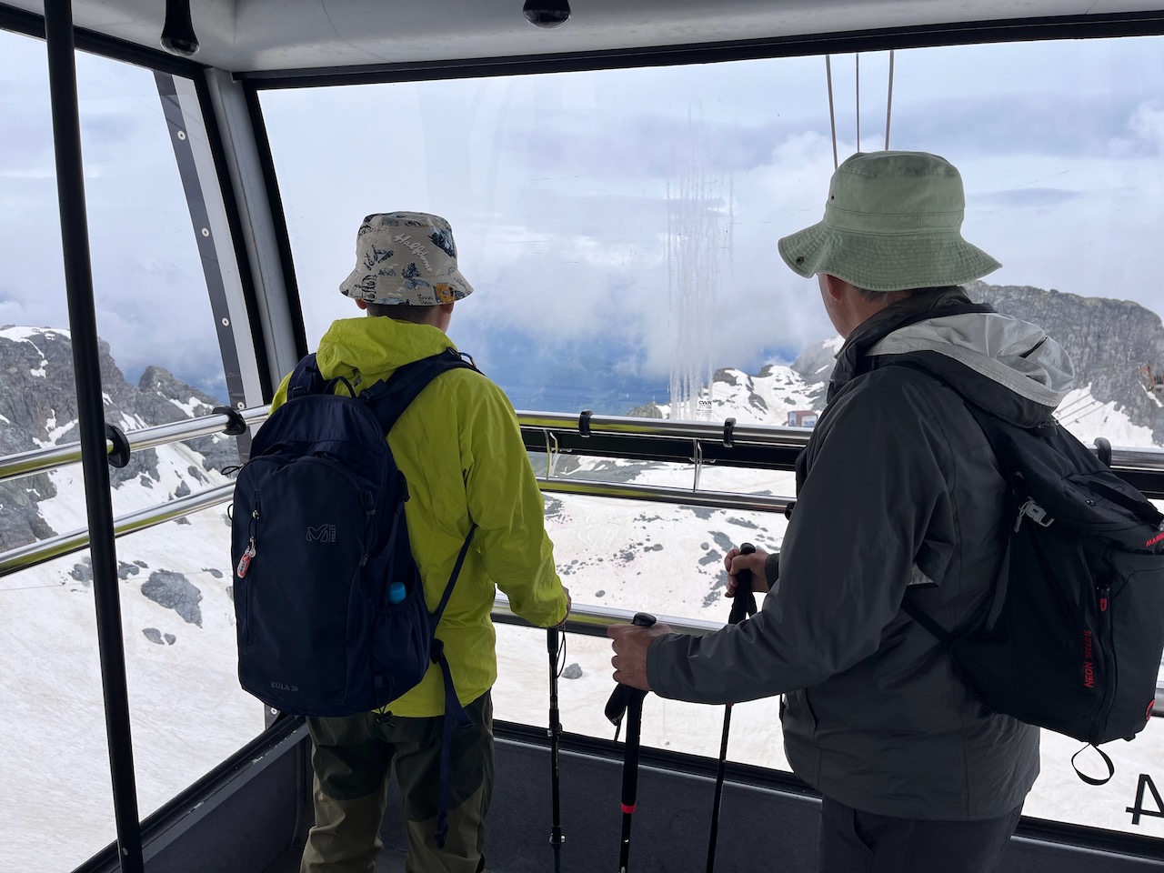 真ん中辺に立ってるのなら だいじょうぶですが端っこのほうへ行くときは、もう見境なくKjさんにしがみついたりIさんの手をにぎっちゃったり。2019年にモハーの絶壁に行ったときみたいに 高所恐怖症全開でした。