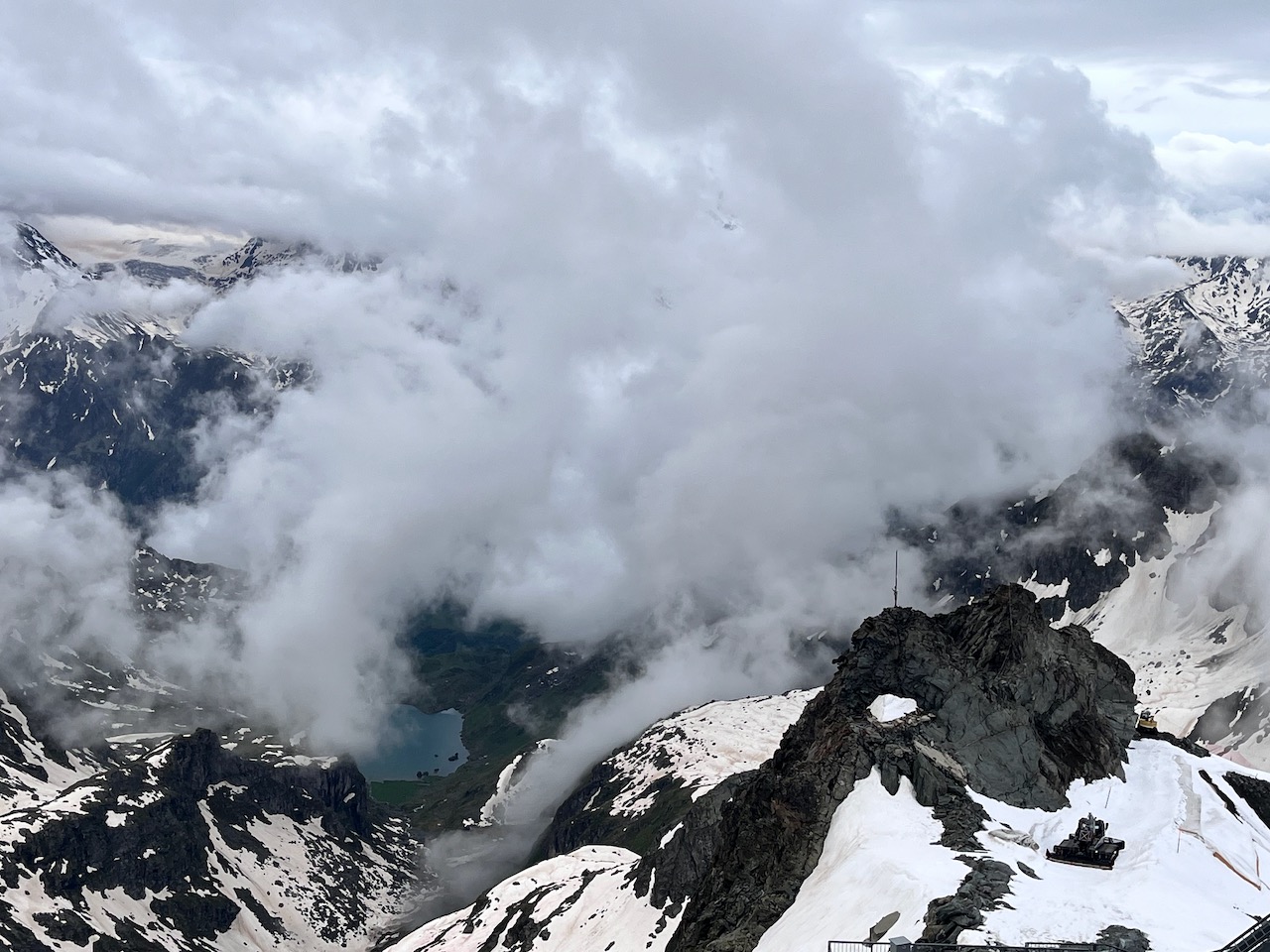 雲海を突き抜けたみたいな感じで、上のほうは幸いに 少しまわりの山々が見えていました!!
