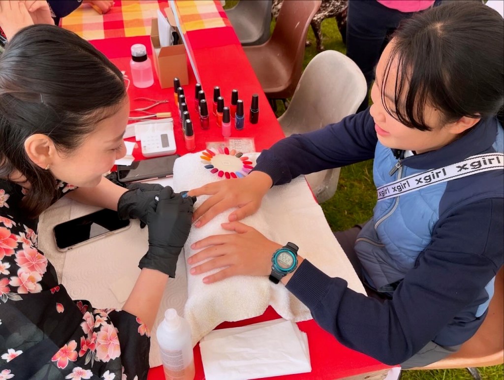 >自分も着物を着て> 浴衣を着せて欲しいひとには早めに来てもらい> 会場に移動して2時間だけ、お祭り会場で「まけないぞう」を売ったり、折り紙コーナーや 今年はキッズマニュキュアをやってくれるエステのお姉さんたち