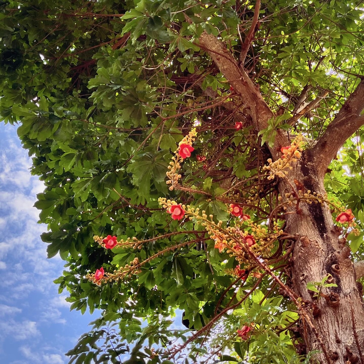 花をつけた木は「沙羅双樹だ」とガイドさんが言っていましたが、諸説あり。。。