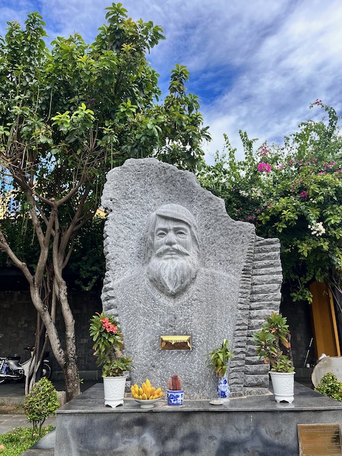 さて ちょっと元に戻りますが、このお茶屋さんの並びに、ちょっと他と感じの違う公園があって、西洋人の像が飾られてあったのです。この人は、ポーランド人の建築家で、ホイアンをはじめベトナムの文化遺産の修復作業に力を尽くした人なのだそうです。