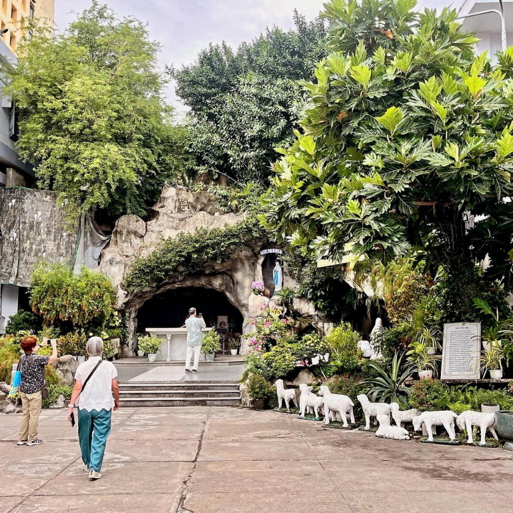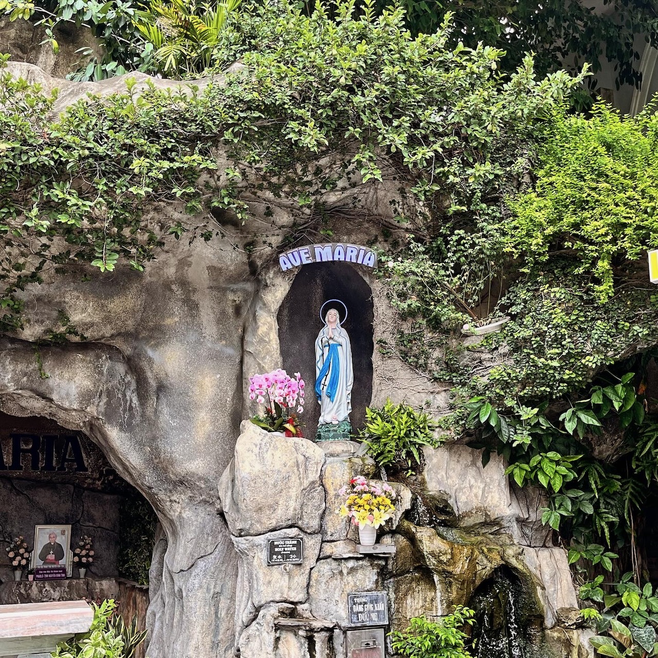 ミサの前に聖堂のまわりをぐるっと拝見したら、ルルドのマリア様が。