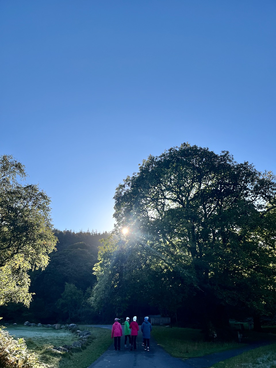 2024.10.11. 凍る寒さの金曜日の朝、グレンダロッホはどちらの湖も川霧が出て何とも言えない美しさ。途中からは湖岸の平らな道を歩くグループと山のほうへ登るグループに分かれて元気に9.1km。