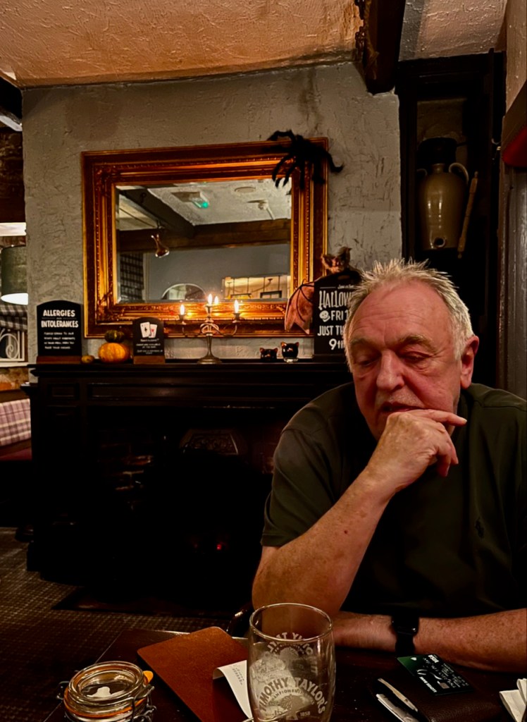 10月17日はbjmの誕生日。イギリスの親戚も私たちが泊まった近くのパブへ来てくれて楽しい会食。翌日の朝ごはんのテーブルでも元気に喋っていたbjmがふと、「しまった!朝8時から午後1時までってメッセージ来てたのに9時からと勘違いしてしまった」と慌てて駆けつけたけど電気屋さんはひと足違いで8:50に来たという「不在連絡票」が。