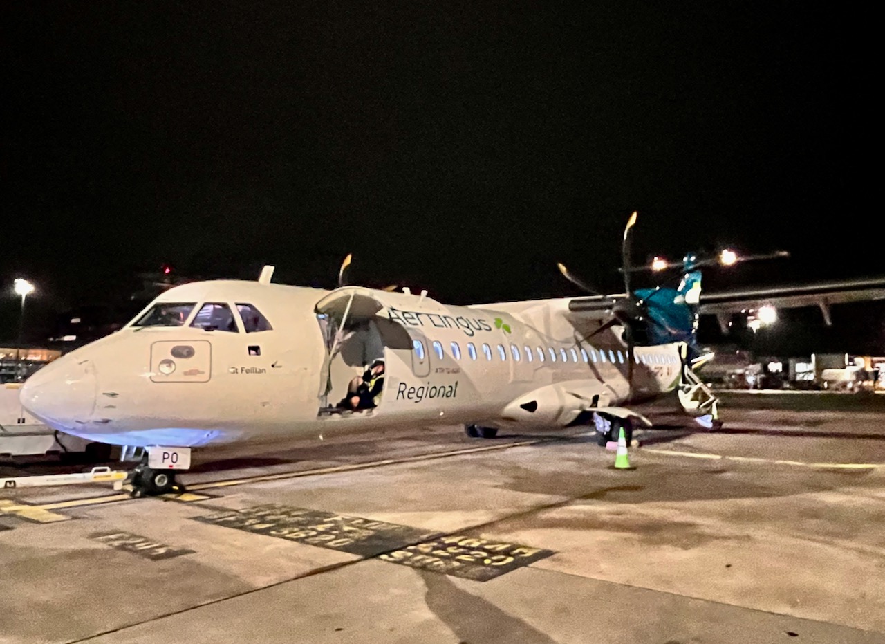 帰りの飛行機はプロペラ機でした。バスみたい!!機内がめっちゃ狭い!!!
