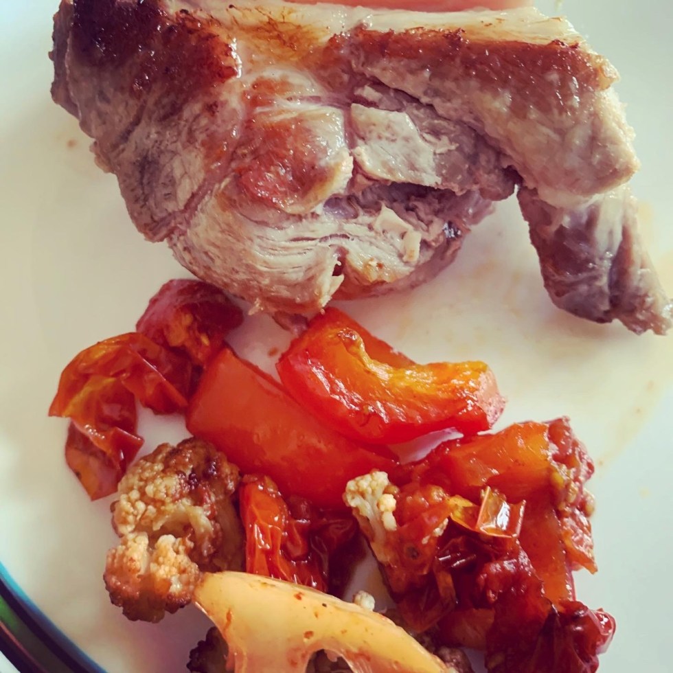 塩豚ローストとバルサミコ酢を使った焼き野菜 échine de porc salée, cuite longtemps et légumes grillés