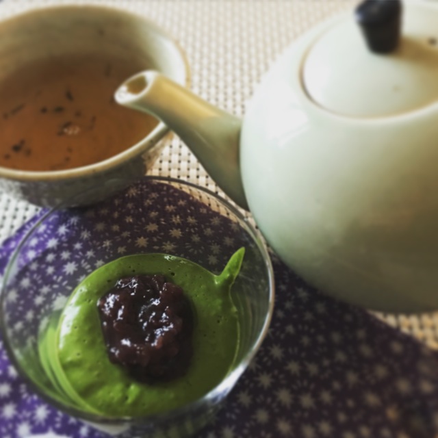 Mousse de tôfu au thé vert et pâte de Azuki 抹茶ムース つぶ餡