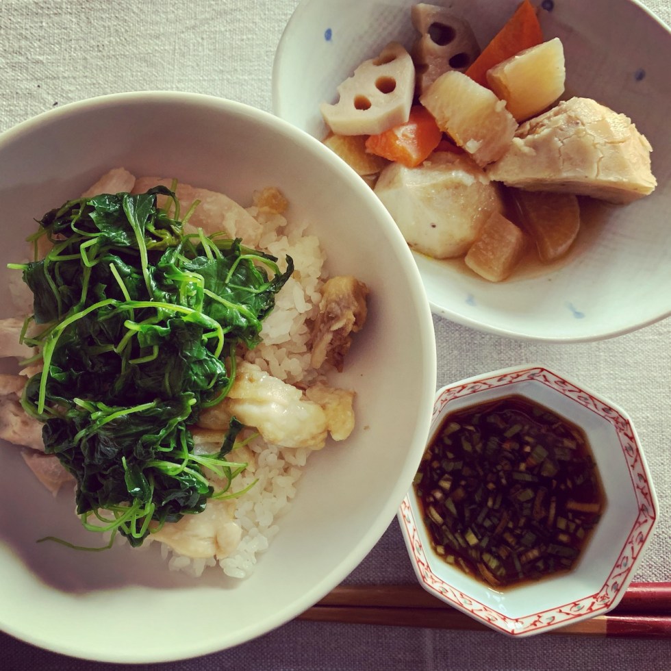 定番のカオマンガイと野菜の煮物、クレソンのポタージュ Légumes…